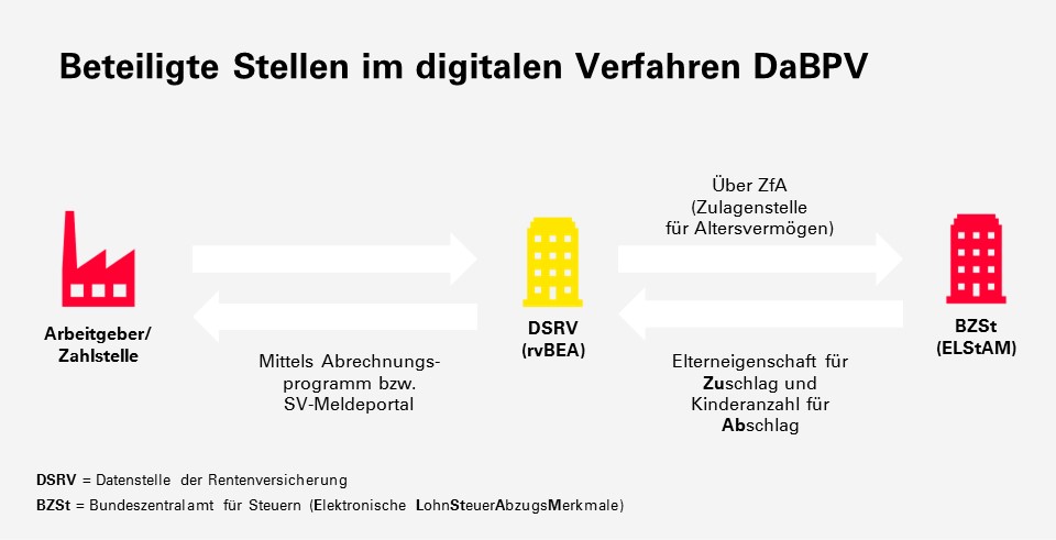 Das Bundeszentralamt für Steuern (BZSt), der Spitzenverband Bund der Pflegekassen und die Deutsche Rentenversicherung Bund haben die Gemeinsamen Grundsätze vom 29. August 2024 aufgestellt. Danach gilt (Ziffer 1.2): „Die Teilnahme am DaBPV ist für alle beitragsabführenden Stellen, die zur Berücksichtigung von Zu- und Abschlägen in der sozialen Pflegeversicherung verpflichtet sind, obligatorisch.“ Die Gemeinsamen Grundsätze (sowie nach deren Finalisierung später auch die von der ZfA aufzustellende Verfahrensbeschreibung) können wertvolle Unterstützung beim Start in das neue Verfahren leisten.