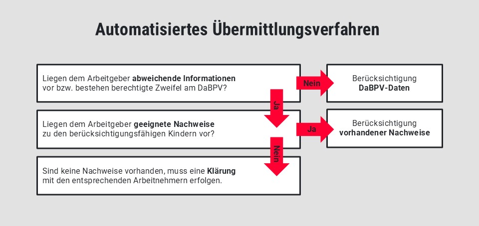 Kinder, die nicht im DaBPV gemeldet werden können, insbesondere weil sie steuerrechtlich nicht relevant sind, wie z. B. bei Stief- und Pflegekindern möglich, können Arbeitnehmer selbst gegenüber ihrem Arbeitgeber nachweisen.